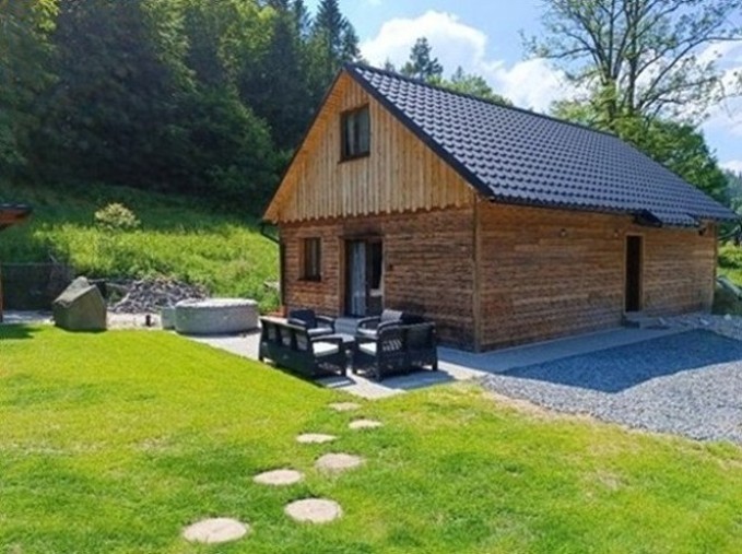 Nově postavená dřevěná chata v chráněné krajinné oblasti (CHKO Beskydy) u lesa nabízí klid na polosamotě s vlastními rybníky ke kterým chodí lesní zvěř pít.